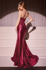 Description: This fitted gown features a strapless sweetheart neckline with a sheer, lace-appliqued corset bodice for a captivating and elegant look. The structured bodice offers enhanced support, while the satin skirt creates a flattering fit-and-flare silhouette. Perfect for prom, formal events, and black-tie occasions, this dress exudes timeless sophistication.